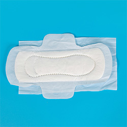 A sanitary napkin is actually a composite of multiple layers of materials, mainly including: non-woven fabric, fluff pulp, super absorbent polymer, polyethylene film, hot-melt adhesive, and elastic materials. Fluff pulp and super absorbent polymer work together to absorb and lock in fluids.